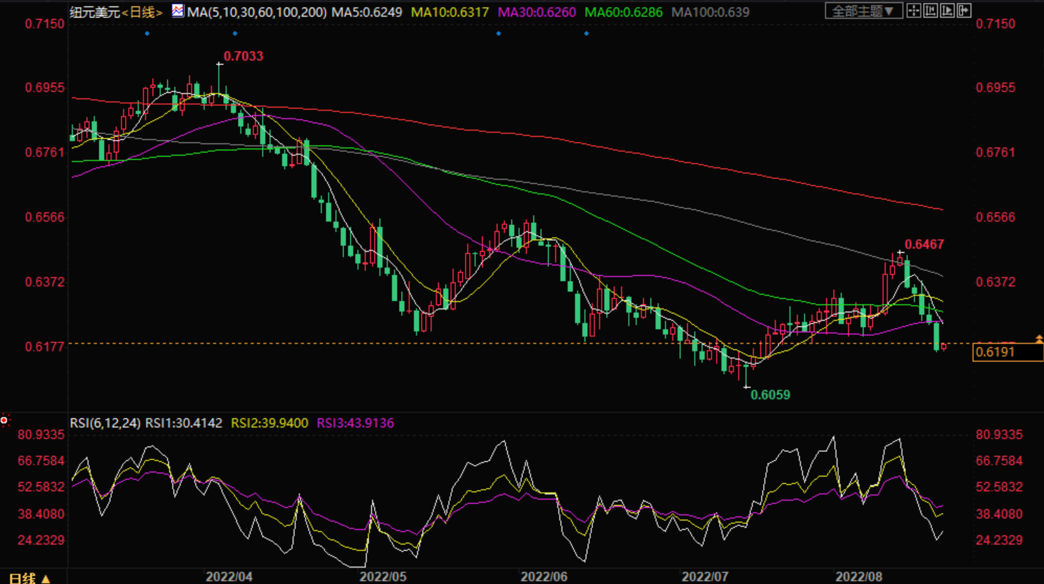 在新西兰元方面,新西兰储备银行(RBNZ)大幅提高官方现金利率(OCR)的举措未能支撑新西兰元。新西兰央行连续第四次将货币弹性基准利率上调50个基点至3%,预计货币弹性基准利率将升至4%。新西兰央行行长奥尔(Adrian Orr)正在提高关键利率,以应对不断加剧的通货膨胀。