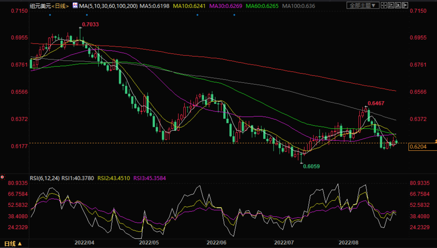 与此同时,若日收盘价超过0.6235附近的50日移动均线阻力位,可能会迅速推动纽元兑美元价格向0.6300的阻力迈进。