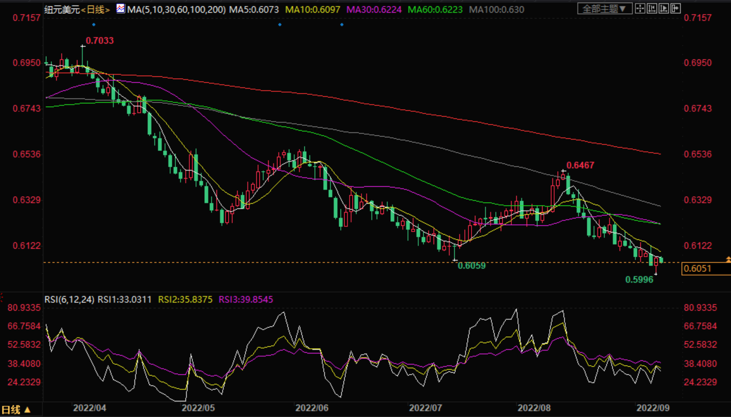 如果纽元兑美元跌破0.5996(2020年5月的最低价),以及0.592 -15附近四个月的下行支撑线似乎是值得关注的强大支撑。