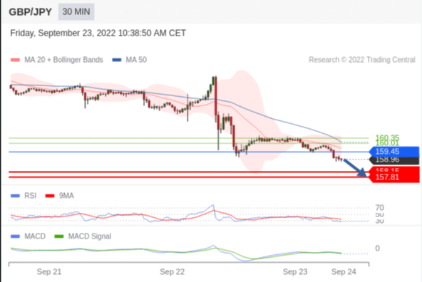 交易策略:看跌,在 159.45 之下。