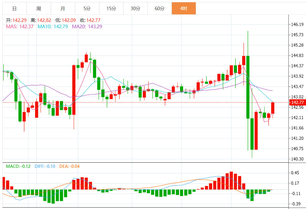 周五欧盘,美元/日元拉升,重回142上方,现交投于142.71,涨幅0.27%。从4小时图来看,美元/日元交投在50周期EMA下方。需要指出的是,若美元/日元突破142.55,这将止住当前的看空压力,并推动该货币对重回主要看涨趋势。