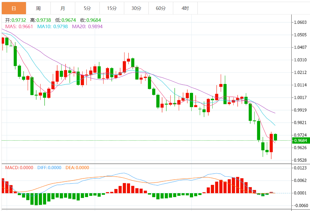 今日预期交易区间在0.9580支撑和0.9750阻力之间。