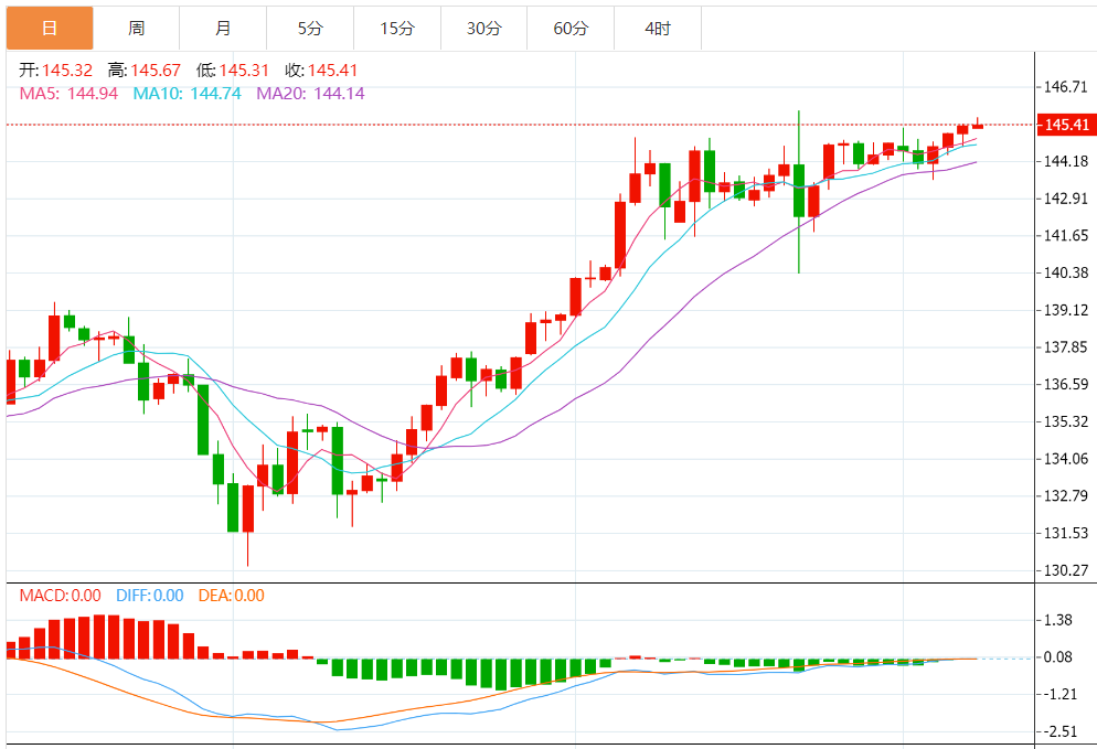 今日预期交易区间在144.90支撑和146.20阻力之间