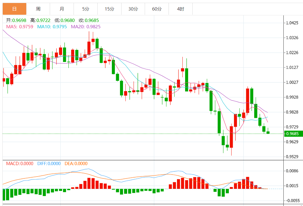 今日预期交易区间在支撑位0.9790和阻力位0.9750之间。