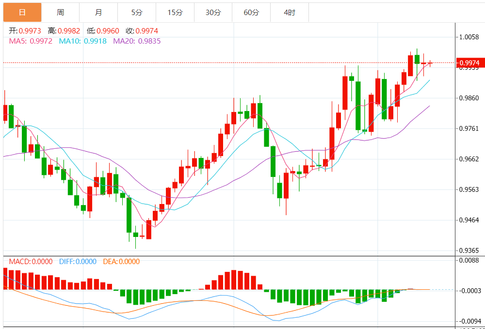 技术上,美元/瑞郎录得更低高点以及相对强弱指标录得更低的高点呈现为隐藏的看跌背离,吸引空头。不过汇价似乎必须明显跌破上升三角形的支撑线0.9970附近才能让空头重拾控制权。值得注意的是,若跌破0.988,汇价将挑战月度低点0.9785附近。