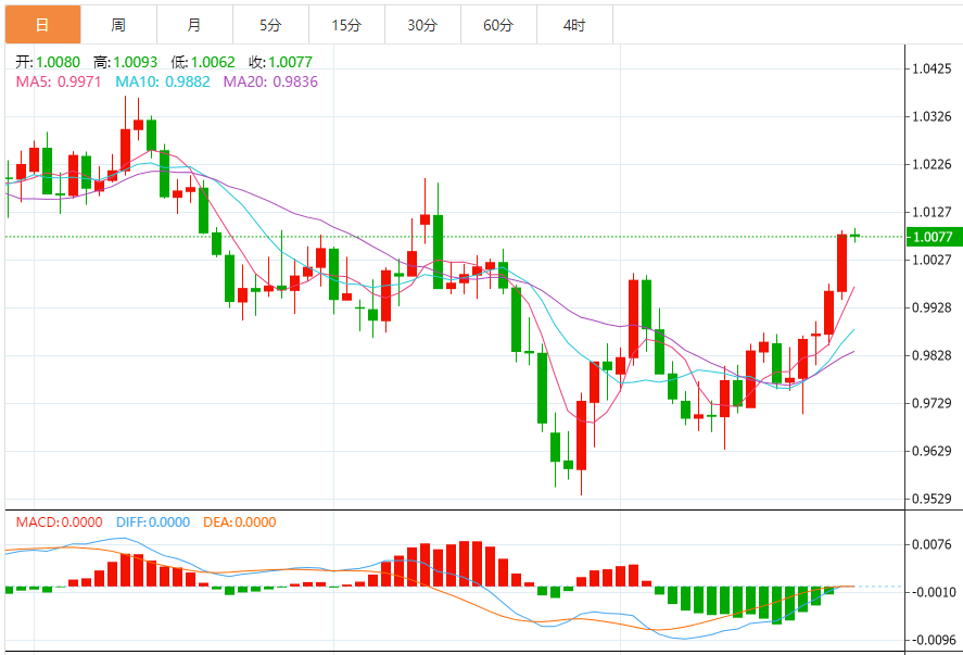 今日预期交易区间在1.0000支撑和1.0160阻力之间。