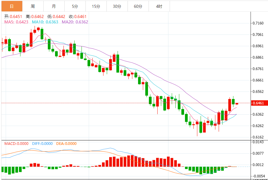 今日预期交易区间在0.6430支撑和0.6550阻力之间