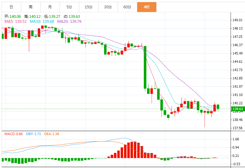 美元兑日元周二跌至8月底以来的最低水平,低于138.00,但周三恢复了势头。该货币对最近在略低于140.00的积极区域交易。从4小时图来看,目前等待美元/日元升向主要目标141.80。因此,只要美元/日元保持在139.45上方,那么我们将继续预测该货币对在未来一段时间处于看涨趋势。预计今日美元/日元交投将位于支撑位139.50以及阻力位141.40之间。