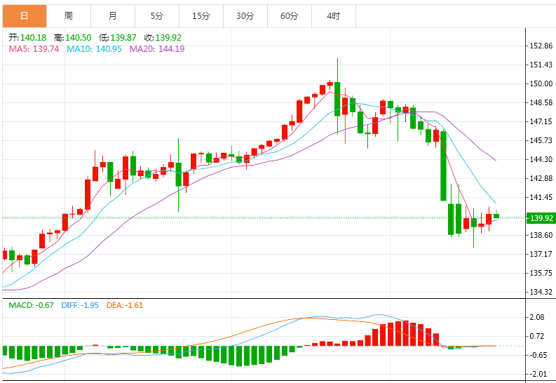 今天预期交易区间在139.60支撑和141.50阻力之间