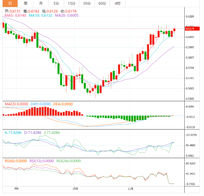 阻力位:0.6179 0.6206 0.6249