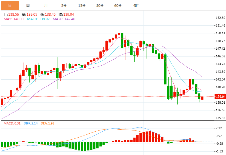 今天的预期交易区间在137.60支撑和139.60阻力之间