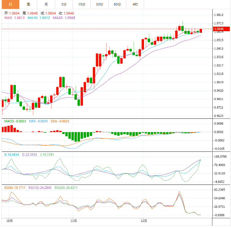 如果欧元兑美元继续疲软,跌破1.0595,那么不排除欧元兑美元跌向本周新低(目前在1.0575附近)的可能性。