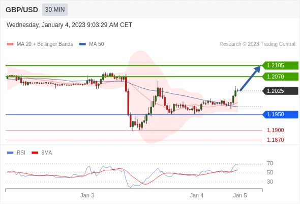 在 1.1950 之上,看涨,目标价位为 1.2070 ,然后为 1.2105 。在 1.1950 下,看空,目标价位定在 1.1900 ,然后为 1.1870。
