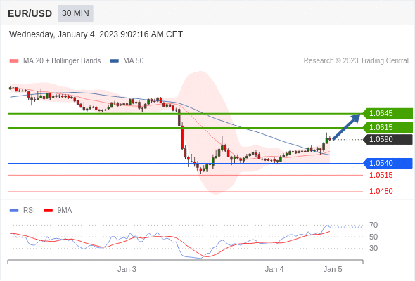 在 1.0540 之上,看涨,目标价位为 1.0615 ,然后为 1.0645 。在 1.0540 下,看空,目标价位定在 1.0515 ,然后为 1.0480。