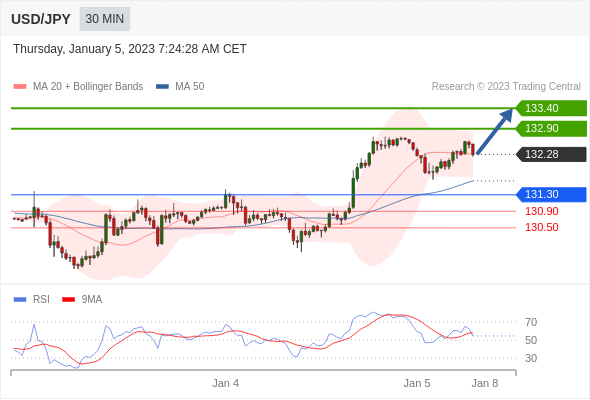在 131.30 之上,看涨,目标价位为 132.90 ,然后为 133.40 。在 131.30 下,看空,目标价位定在 130.90 ,然后为 130.50。