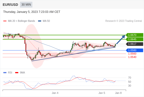 在 1.0580 之上,看涨,目标价位为 1.0645 ,然后为 1.0670 。在 1.0580 下,看空,目标价位定在 1.0560 ,然后为 1.0540。
