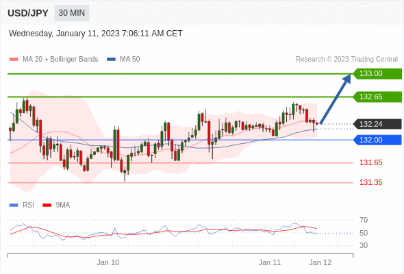 在 132.00 之上,看涨,目标价位为 132.65 ,然后为 133.00 。 在 132.00 下,看空,目标价位定在 131.65 ,然后为 131.35。