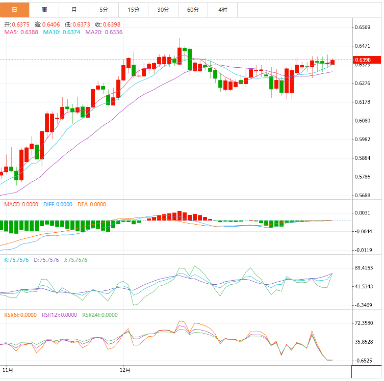 阻力位:0.6424 0.6461 0.6505