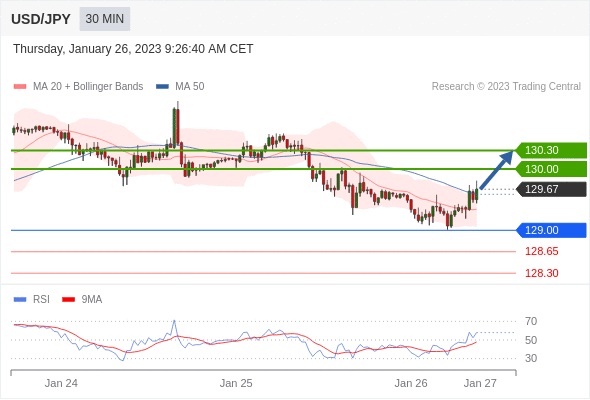 在 129.00 之上,看涨,目标价位为 130.00 ,然后为 130.30 。在 129.00 下,看空,目标价位定在 128.65 ,然后为 128.30。