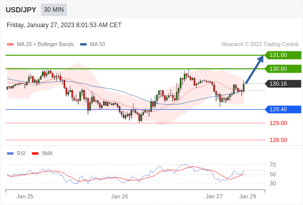 在 129.40 之上,看涨,目标价位为 130.60 ,然后为 131.00 。 在 129.40 下,看空,目标价位定在 129.00 ,然后为 128.50。