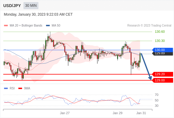 在 130.00 之下,看跌,目标价位为 129.20 ,然后为 129.00 ,在 130.00 上,看涨,目标价位定在 130.30 ,然后为 130.60。