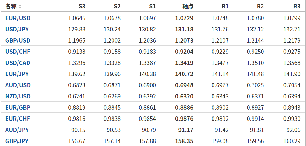 日元:美元/日元收高,收报131.340,涨幅0.26%。技术面上,汇价上行的初步阻力位于131.72,进一步阻力位132.099,关键阻力位于132.661;汇价下行的初步支撑位于130.779,进一步支撑位于130.217,更关键支撑位于129.838。