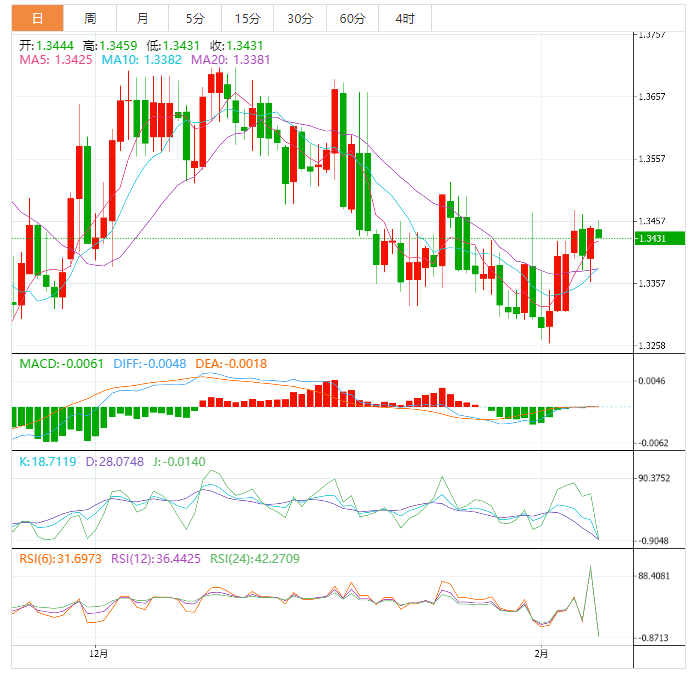 若突破2月7日的高点1.3469,将推动该货币对向1月19日的高点1.3521和1月6日的低点1.3538挺进。