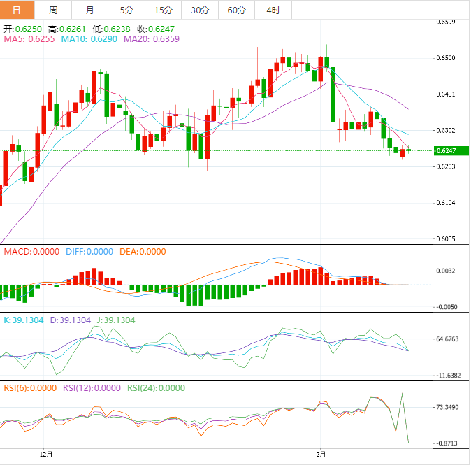 或者,1月6日的低点0.6193的崩溃将拖累该资产走向11月28日的低点0.6155。如果跌破后者,该资产将进一步下行至一轮支撑位0.6100。