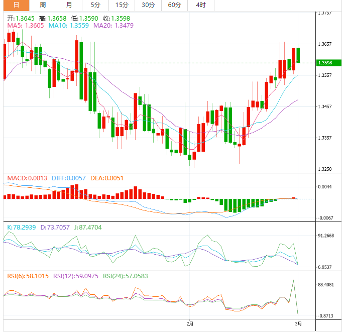 支撑位:1.3589 1.3532 1.3504
