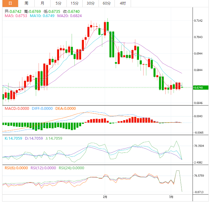 中国上周末设定的本年度GDP增长目标为5%,低于预期,削弱了这个全球第二大经济体强劲复苏的预期。这导致了澳元的小幅下跌,尽管美元的疲软基调帮助澳元/美元在0.6740区域附近吸引了一些买盘。美国国债收益率的小幅下降被视为让美元多头在周一处于守势的关键因素。