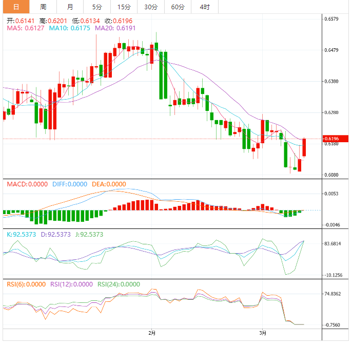 纽元兑美元的上行也可能与太平洋国家新西兰2月商业指数(55.5,前值54.5)以及当月食品价格指数(环比1.5%,前值0.6%和1.7%)有关。