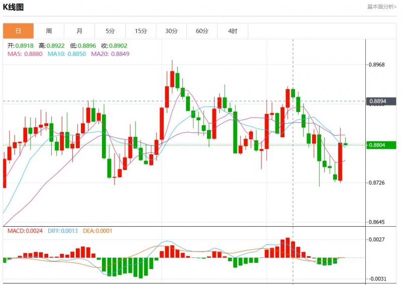 今日分析:看涨,当 0.8789 为支撑位,目标定在0.8851。