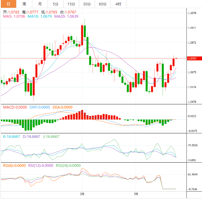 相反,向下突破1.0700支撑位可以迅速将价格拉向1.0595附近的100日移动均线支撑位。