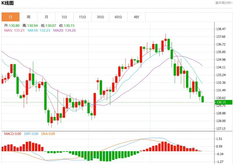 今日周五,欧元兑美元报1.0834,涨幅0.04%;英镑兑美元报1.2283,跌幅0.01%;美元兑日元报130.14,跌幅0.48%。