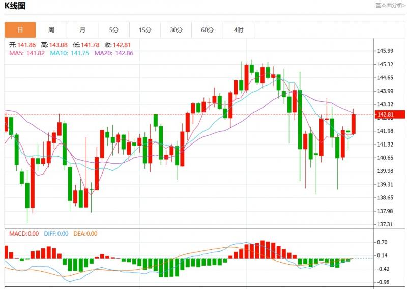 周三盘中,欧元日元报142.87,涨幅0.62%。