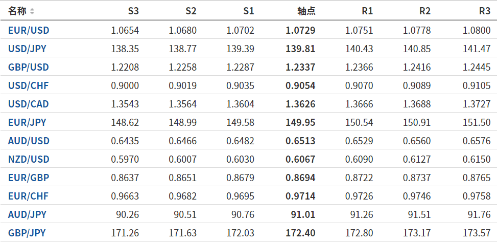 日元:美元/日元收高,收报140.039,涨幅0.42%。技术面上,汇价上行的初步阻力位于140.582,进一步阻力位141.11,关键阻力位于141.992;汇价下行的初步支撑位于139.172,进一步支撑位于138.29,更关键支撑位于137.762。