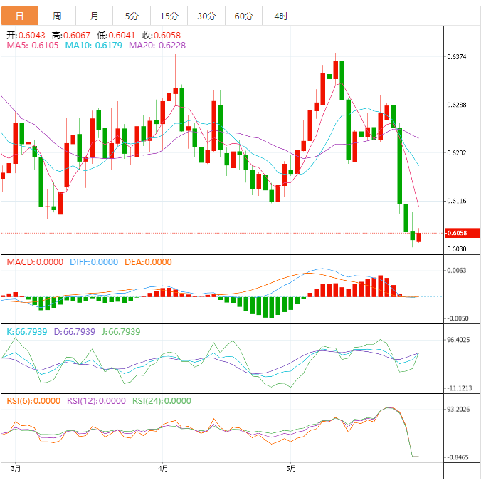 阻力位:0.6085 0.6123 0.615