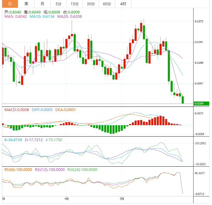阻力位:0.6066 0.6087 0.6108