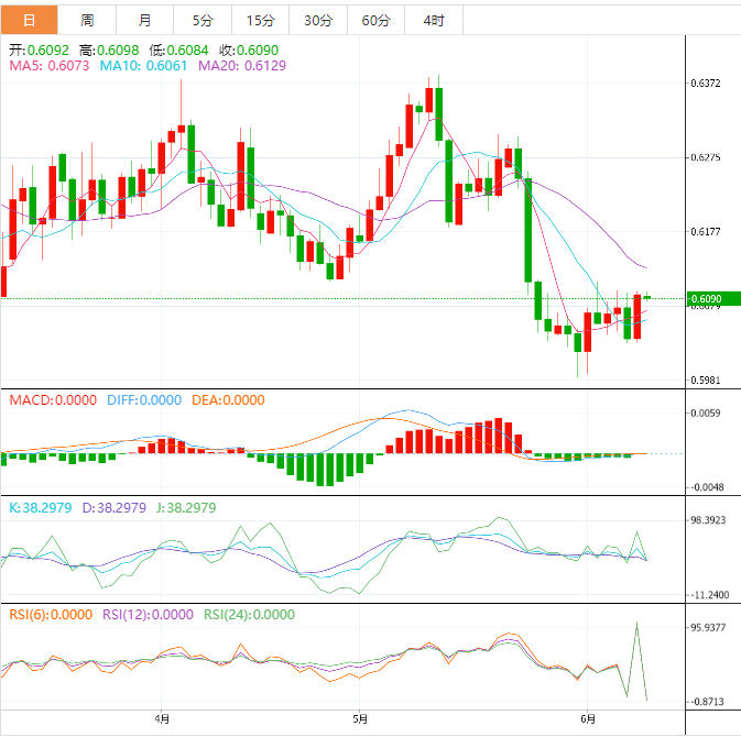 阻力位:0.6079 0.6121 0.6145
