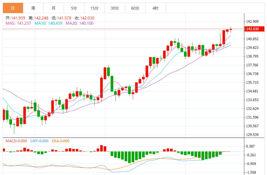 周二(6月20日),美元/日元上涨,暂报142.056,涨幅0.06%。