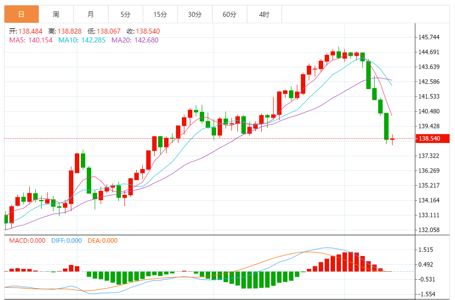 周四(7月13日),美元/日元下跌,暂报138.522,涨幅0.02%。
