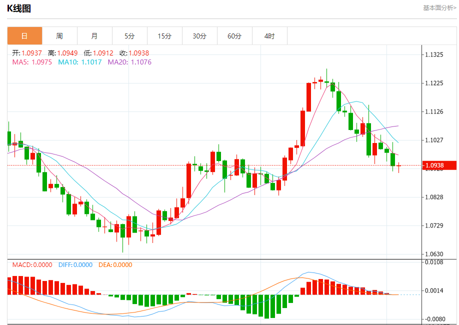 汇价高见1.0949,低见1.0912。上一交易日,汇价收于1.0938。
