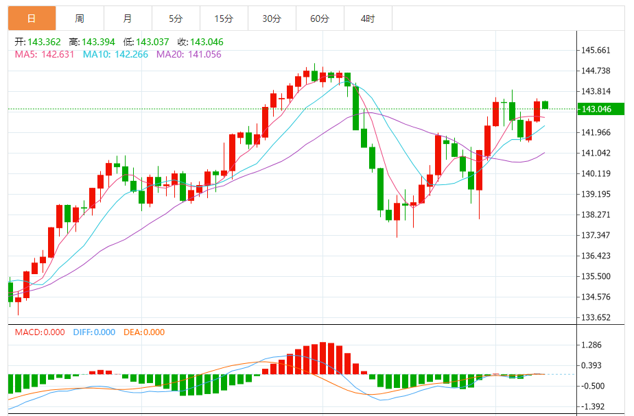 周三(8月9日),美元/日元上涨,暂报143.055,跌幅0.22%。