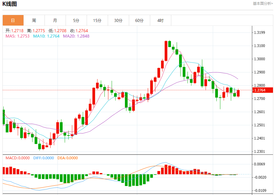 汇价高见1.2775,低见1.2708。上一交易日,汇价收于1.2718。