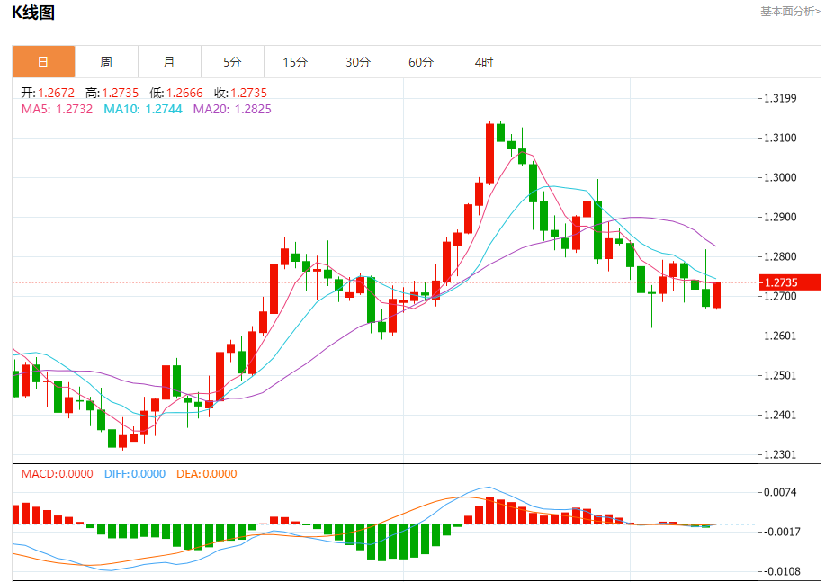 汇价高见1.2731,低见1.2666。上一交易日,汇价收于1.2675。