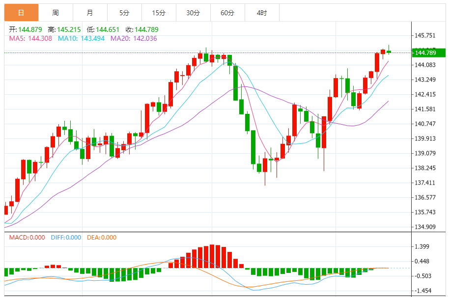 周一(8月14日),美元/日元下跌,暂报144.804,跌幅0.10%。