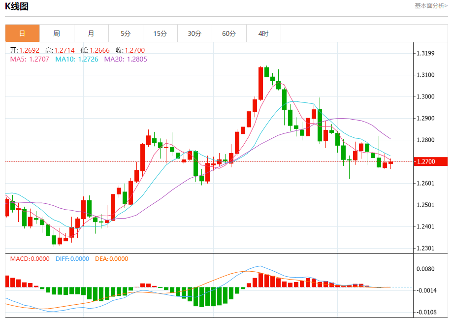 汇价高见1.2714,低见1.2666。上一交易日,汇价收于1.2696。