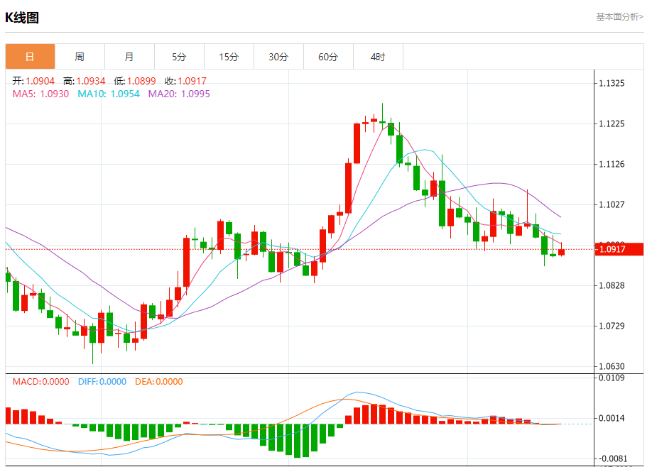 汇价高见1.0934,低见1.0899。上一交易日,汇价收于1.0901。
