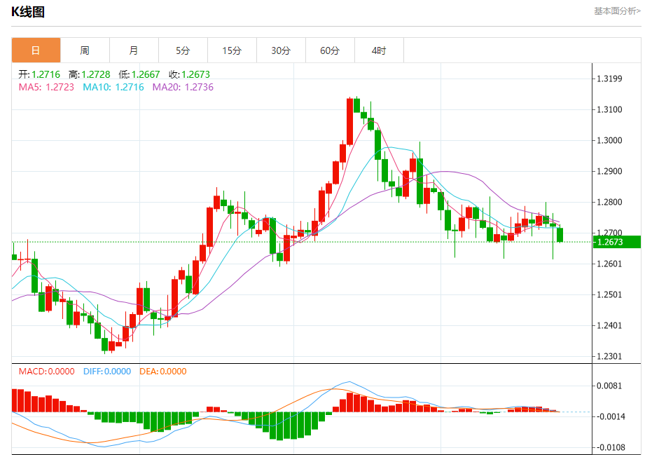 汇价高见1.2728,低见1.2667。上一交易日,汇价收于1.2722。