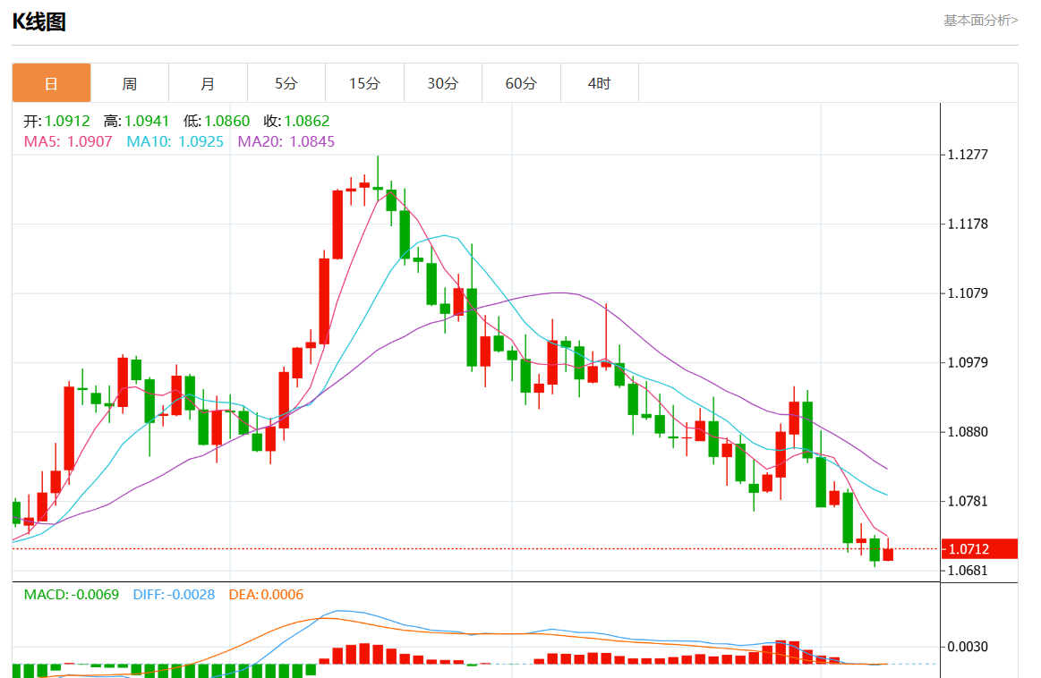 周五欧市盘中,欧元/美元最新报1.0716,日图涨0.19%